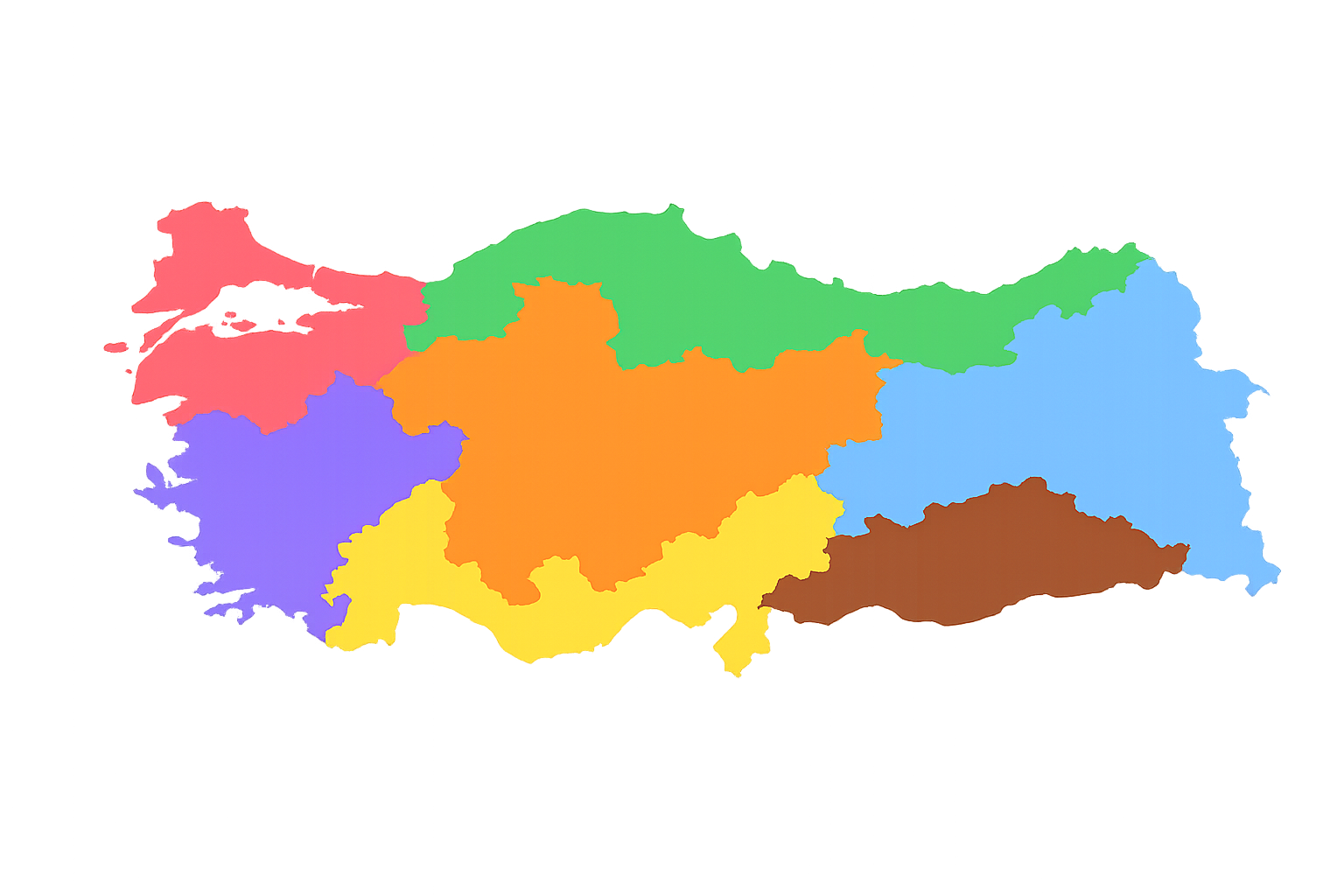 Türkiye'nin 7 coğrafi bölgesini görsel harita uzerinden inceleyebilirsiniz.
